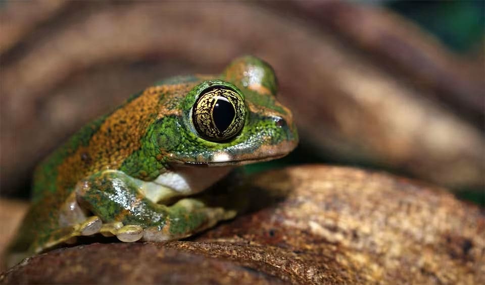 Most striking feature—its skin coloration which mimic the mottled light patterns created by sunlight filtering through leaves