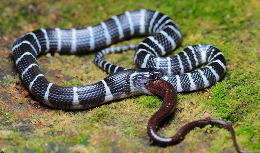 Its distinct black-and-white pattern is a warning sign to predators—beautiful but deadly