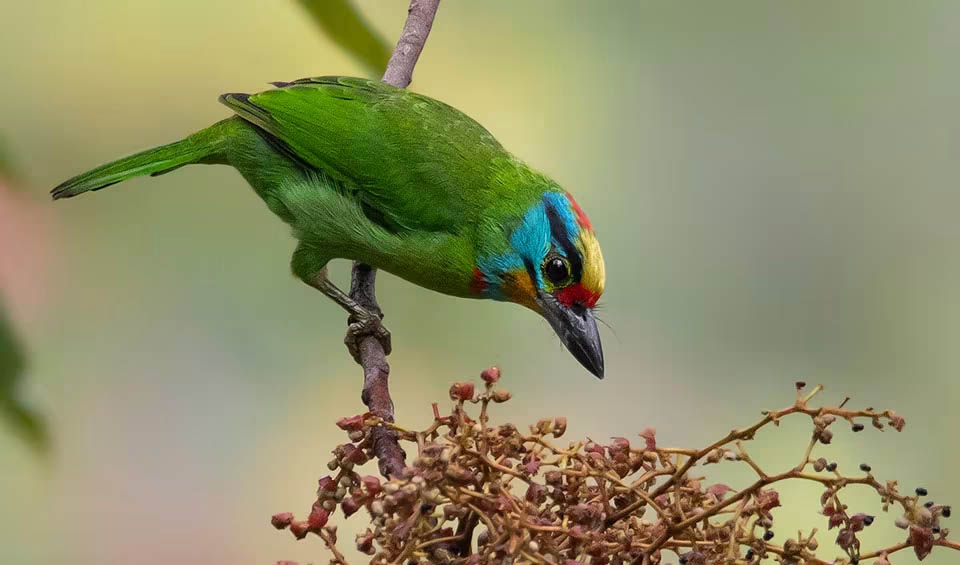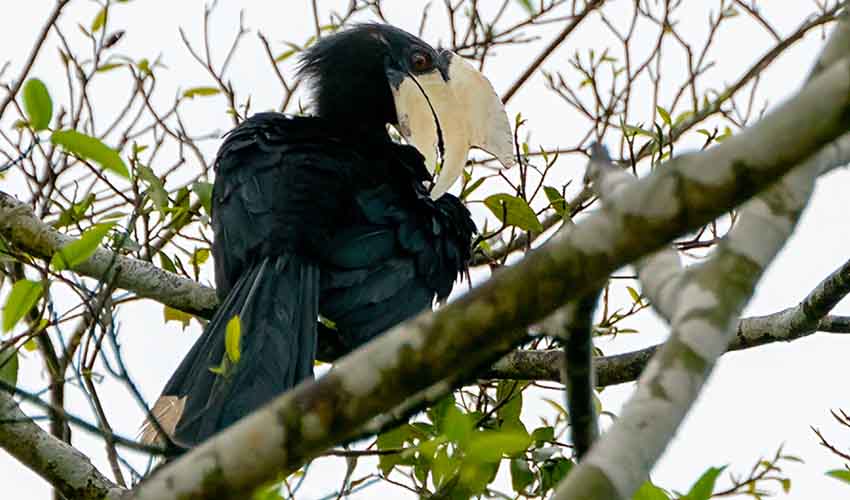 Its bright turquoise bill actually seems to glow in the dim forest light, a rare trait among birds