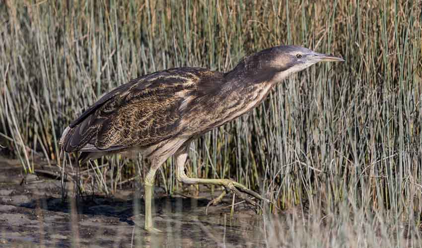 Its streaky brown feathers match reeds so well that it can be nearby and still look like part of the vegetation