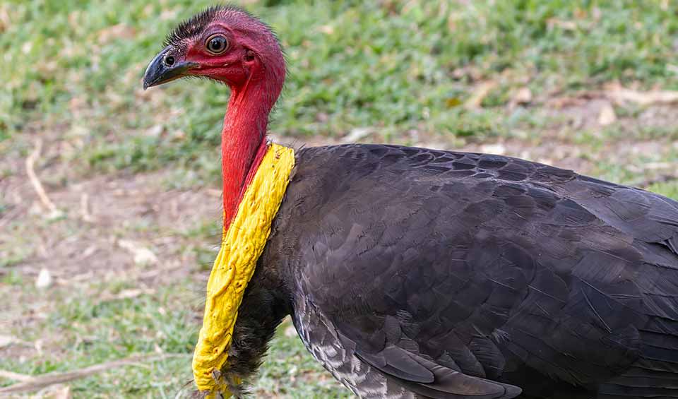 One of the quirkiest and most determined birds you’ll ever meet! With its black feathers, bright red head, and scruffy yellow (or sometimes white) wattle, it looks like a bird that’s just stepped out of a prehistoric jungle. Found in eastern Australia, especially in forests and even suburban backyards, the brushturkey is famous for one thing: its incredible building skills. During the breeding season, the male brushturkey becomes a full-time architect, constructing giant mounds of leaves, soil, and sticks — sometimes over 4 meters (13 feet) wide and 1 meter (3 feet) tall!