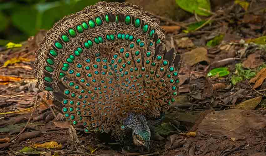 One of the most secretive and mysterious birds of Southeast Asia. It is found only on the island of Borneo, making it a true island specialist. Unlike the bright and famous peacock, this bird is built for subtlety. From a distance, it looks mostly brown and blends almost perfectly with the forest floor. This camouflage helps it stay hidden in dense, shadowy lowland forests. But when seen up close, especially the male, the Bornean peacock-pheasant reveals a very different side—one filled with fine patterns, a neat crest, and striking eye-spots on its tail feathers that can shimmer with hints of blue and green.