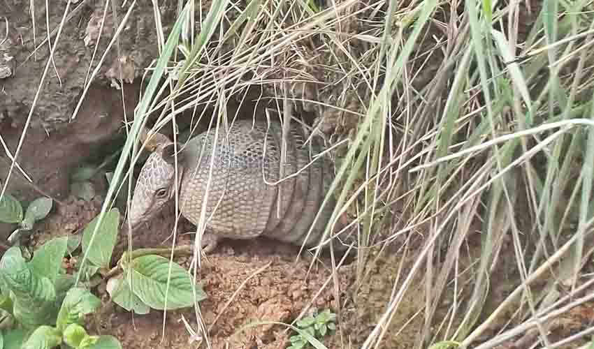 What distinguishes the Llanos long-nosed armadillo from other long-nosed armadillos is a mix of size, head shape, and home address. It’s generally smaller and lighter than the widespread nine-banded armadillo, and its snout often appears a bit shorter and less “stretched,” giving the head a more compact profile. Across the middle of its shell, it typically has about eight flexible bands that act like hinges, allowing it to bend and squeeze through tight spaces. Unlike the famous three-banded armadillos, it doesn’t rely on curling into a sealed ball; its main safety plan is to drop into cover or vanish underground. And the Llanos itself is part of its identity—this isn’t an armadillo of dense rainforest or cool mountains. It’s a plains specialist, often tied to patches of thicker vegetation and ground that’s workable for burrows, even when nearby areas get soaked.