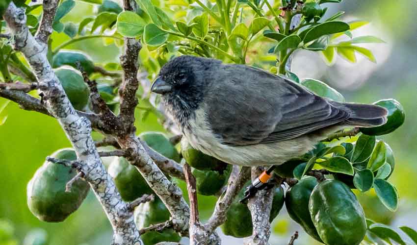 One of the most extraordinary—and also one of the rarest—members of Darwin’s famous finches. Endemic to the Galápagos Islands, this bird is found only on Floreana Island, making it a true island specialist. Its appearance is modest: males are gray-brown with darker wings and pale underparts, while females are usually duller, blending into the forest canopy.