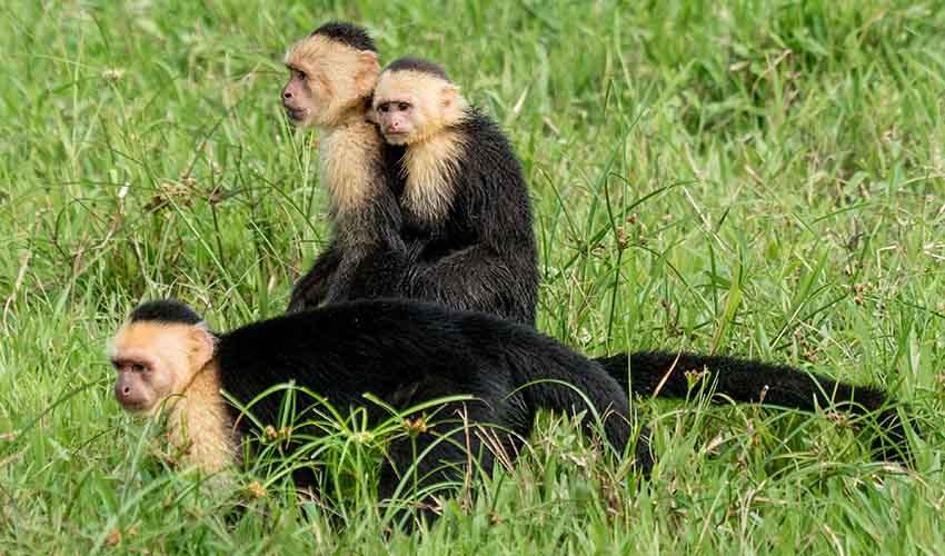 One of the most iconic monkeys of Central America, it is instantly recognizable for its contrasting black body and creamy white face, throat, and shoulders. Found from Honduras down through Panama, this capuchin is a clever, adaptable primate that thrives in tropical forests, mangroves, and even areas close to human settlements. Its striking looks and remarkable intelligence have made it one of the most famous monkeys in the region—often featured in wildlife documentaries and even in folklore.