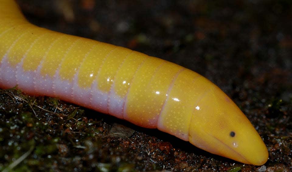 What makes the São Tomé caecilian so unique compared to its relatives is its isolation. While other caecilians can be found across tropical regions in South America, Africa, and Asia, this one evolved separately on its island home, developing traits that help it thrive in its specific environment. For example, its eyes are tiny and hidden under the skin, because seeing isn’t much help when you live underground. Instead, it uses special tentacle-like sensors on its head to “taste” and feel its surroundings, helping it find prey like termites and earthworms. Some scientists believe this species may even have slightly better-developed tentacles than its mainland cousins, which would be a neat adaptation to its unique environment.