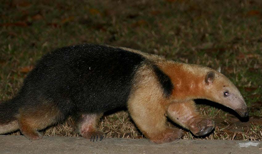 Its arboreal skills make the Southern tamandua distinct from its giant anteater cousin. While giant anteaters are strictly ground-dwellers, Southern tamanduas are excellent climbers. Their strong forelimbs and tail allow them to clamber up trees, where they tear into termite nests and ant colonies hidden in trunks and branches. They are often described as “half-terrestrial, half-arboreal” anteaters, switching between foraging on the ground and in the treetops. Though excellent for ripping apart insect mounds, their claws make them clumsy walkers on flat ground, so they often shuffle about on the sides of their feet to avoid stabbing themselves.