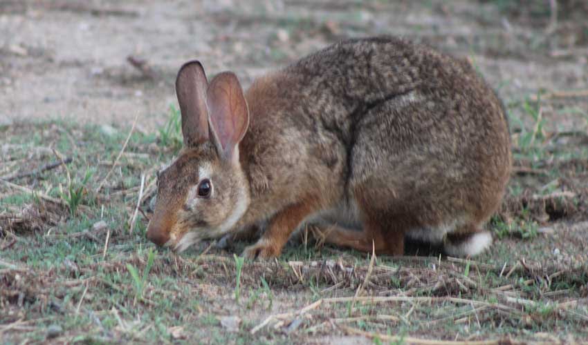 In daily life, this rabbit behaves like a classic cover-and-dash specialist. It spends a lot of its time in or near dense vegetation, where it can feed and disappear quickly. Its diet is mostly vegetation—grasses and other plants—shifting to twigs and bark when conditions are tougher, which is a common survival trick for rabbits in drier seasons. Like other cottontails, it relies heavily on staying close to shelter; instead of racing long distances like a hare, it’s more likely to bolt a short way into cover and then freeze, trusting camouflage and stillness to finish the job.