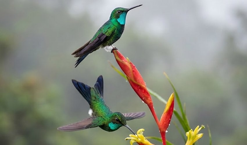 One of the most mysterious hummingbirds on Earth—so rare that it has almost become a legend. It belongs to a group of Andean hummingbirds nicknamed “pufflegs” because they wear dramatic, fluffy leg tufts that look like tiny white pom-pom pants. On the turquoise-throated puffleg, those leg “puffs” stand out sharply against a mostly green, glossy body. The male is said to be especially striking: when the light hits just right, its throat flashes a turquoise-to-violet shimmer, like a jewel that changes color as it moves. Even in a family of birds famous for sparkle, that bright throat patch and the bold white leg tufts make it sound unforgettable—if only people could reliably find one in the wild.