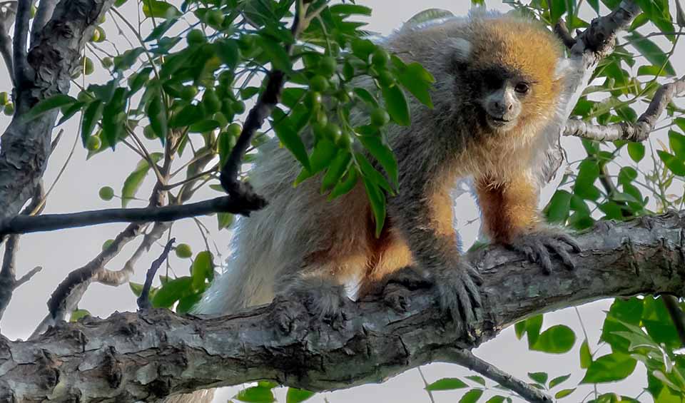 One of the most charming things about the White-coated titi is its strong sense of family. These monkeys are known to be incredibly devoted to their partners, often forming lifelong bonds with a mate. Mated pairs are usually seen sitting close together, tails intertwined, grooming each other, or just resting side by side. They live in small family groups, typically made up of the parents and their young. What’s especially unique is that the father plays a big role in raising the baby—he carries the infant almost all the time, only handing it over to the mother when it’s time to nurse. This close-knit family structure is one of the defining features of all titi monkeys, and the White-coated titi is no exception.