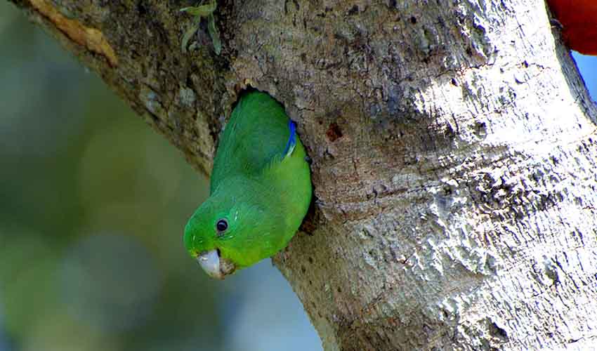 Among the quietest parrots, sometimes flying without making a sound