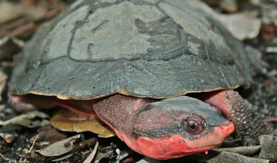 A striking feature of the Chelidae is their long and flexible necks, which are as long as the shell itself in some species. This serpentine neck, which cannot be fully retracted into the shell, has given rise to the nickname “snake-necked turtle.” Instead of retracting their necks, they bend them sideways beneath their shell when feeling threatened.
