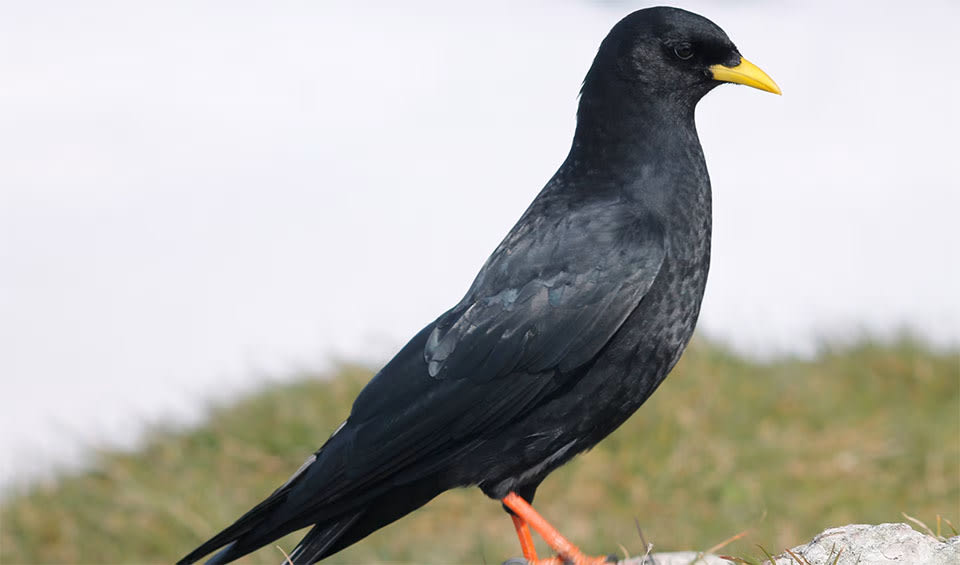 Chough’s looks make it apparent that they are relatives of crows, but red legs and red/yellow bills give them a unique identity