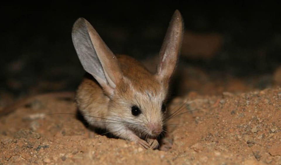 The long-eared jerboa is a nocturnal creature, meaning it is most active at night. During the day, it stays burrowed under the sand to avoid the scorching desert heat and the eyes of predators. At night, it comes out to feed primarily on insects, using its excellent hearing and jumping ability to catch them.