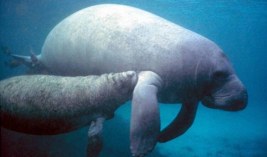 Largest of the sirenians, divided into two subspecies, the Florida manatee in the US and the Antillean manatee in the Caribbean