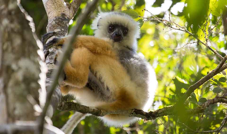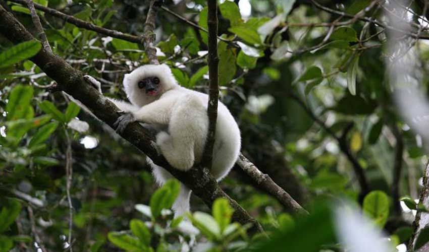 Sifakas are diurnal, meaning they are active during the day. They spend most of their time in trees, exhibiting remarkable agility as they leap among branches. Their diet primarily consists of leaves, fruits, flowers, and occasionally bark and wood, which makes them important seed dispersers in their ecosystem. By eating fruit and excreting the seeds, sifakas help in the growth of their forest homes, playing a vital role in their ecological community.