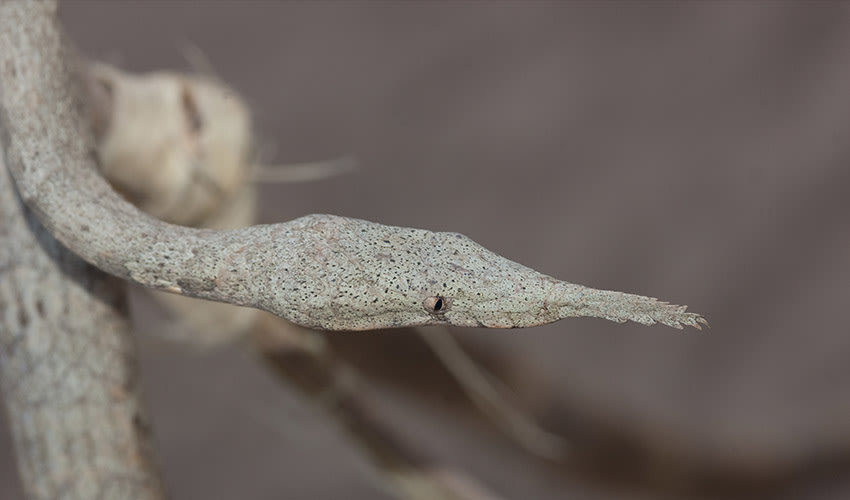 One of the few snakes that looks like a stick or leaf, making it almost invisible to both predators and prey