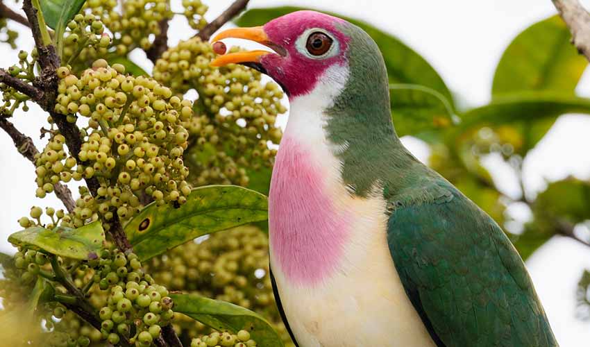 These colorful birds form social flocks, their calls echoing through the forest like a symphony of chirps and coos. This social interaction extends beyond mere chit-chat. Fruit doves play a vital role in the health of their environment by acting as seed dispersers. As they devour fruits, the seeds pass through their digestive system and are deposited in new locations. This natural process helps regenerate forests, ensuring a healthy and diverse ecosystem.