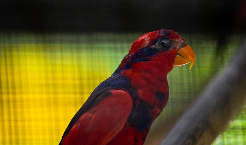 Hanging upside down to reach blossoms? Totally normal for a lory